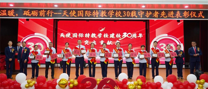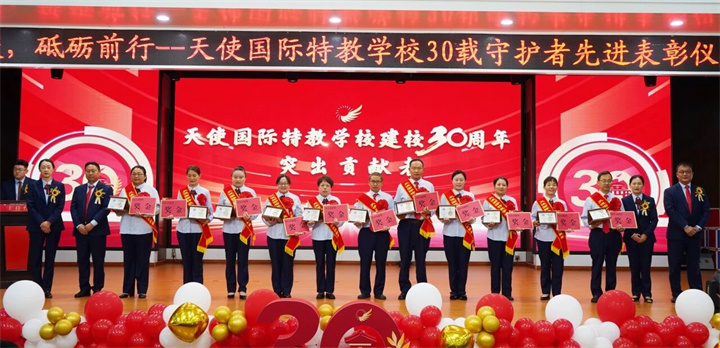 建校功臣获奖代表刘国相副董在发言中深情回顾了学校从无到有的奋斗历程,彰显了天使人的坚守与奉献;建校突出贡献奖获奖代表张丽丽老师从爱与责任出发,分享了二十余年扎根特教、守护“特殊儿童”的温暖点滴。他们的发言,共同诠释了天使人的初心与使命。