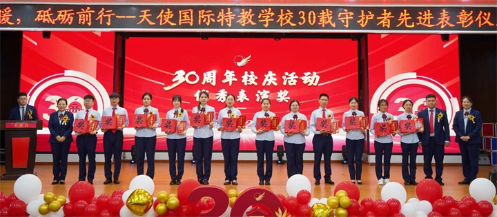 “天使国际特教学校30载守护者先进表彰仪式”在庄重而温馨的氛围中拉开帷幕。集团董事长、天使国际特教学校校长王军微,学校党总支书记陈庆莲,学校党总支副书记、丽江民族特教学校校长刘国相,集团副董事长赵红霞、李瑜,集团常务副董事长杨全龙,集团副董事长赵美娜分别宣读《关于对建校功臣进行表彰的决定》、《关于对建校突出贡献者进行表彰的决定》、《关于对优秀教师进行表彰的决定》、《关于对优秀医务工作者进行表彰的决定》、《关于对校庆工作表现突出的个人进行表彰的决定》、《关于对优秀文艺演员进行表彰的决定》、《关于对马风云、吴晓玲进行通报表扬的决定》。