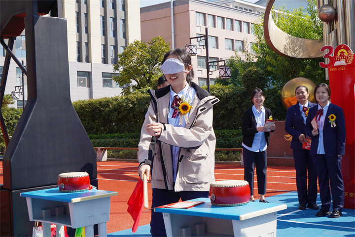 随着表彰活动落下帷幕,“集章打卡·答题互动”校园预热活动正式开启。活动设置时光信箱、荣誉殿堂、知识竞答、校歌接龙、校庆幸运圈、掷骰子猜点数、沙包掷靶盘、冰壶大战、极限风火轮、蒙眼击鼓十个趣味打卡项目。教职工们热情参与,穿梭于各个打卡点之间,在挑战与合作中重温学校三十年奋斗历程,彰显了天使人团结协作、昂扬向上的精神风貌。